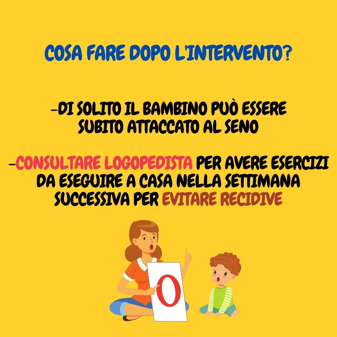 Prima dell’operazione prendere appuntamento con una logopedista che illustrerà dei semplici esercizi da eseguire a casa nei giorni successivi per EVITARE RECIDIVE!