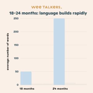 Come si può vedere, in questa fascia d’età il linguaggio si sviluppa rapidamente . È incredibile vedere come il loro vocabolario inizi a crescere! Mentre prima potevate elencare rapidamente le parole che avevano, ora è diventato un elenco molto più scoraggiante da tenere sotto controllo!